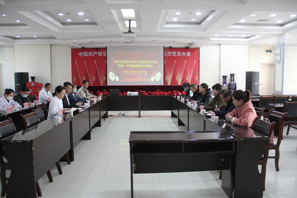 2月7日,兰州大学口腔医学院刘斌院长一行6人到省康复中心医院参观考察,并进行了座谈交流。刘斌院长一行在省康复中心医院院长王建云陪同下,对医院口腔科业务开展情况、运营管理模式、设备以及人才队伍建设等情况作了深入了解。座谈会上,王建云对医院基本情况和近年来在康复医疗领域内的发展建设作了简要介绍。刘斌院长一行对医院在服务各类残疾患者康复方面取得的成效给以了高度赞誉,认为值得学习和借鉴,希望双方能够加强合作和交流,优化资源,互为补益,服务更多患者需求。