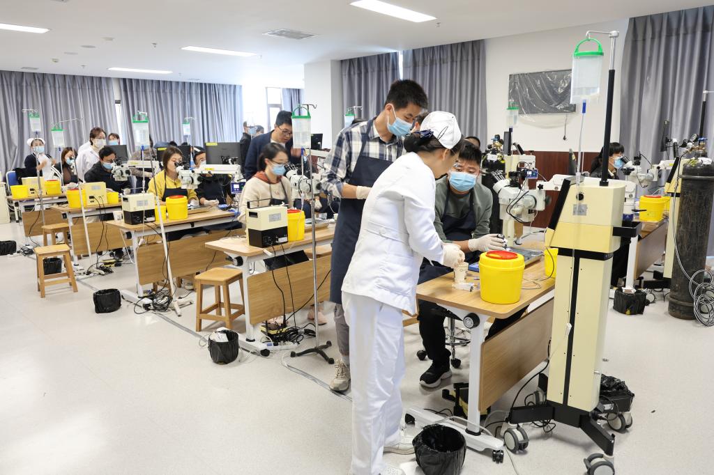 此次培训班为期三天。培训采用理论和实操相结合、一对一指导、视频同步、饱和式练习、现场考核、专家点评等教学方式,使学员们对超乳白内障手术有了更加全面的认识;会议特邀知名眼科专家为现场医护人员作了白内障超声乳化核处理、白内障超声乳化动力学及应用、白内障超乳手术技术操作要点(切口、撕囊、水分离等)、显微镜在白内障玻切手术中的应用要点、屈光白内障手术规划等专题讲座;培训班还专门配备了10台高端进口超声乳化仪及手术显微镜,为学员提供全方位、全过程“一对一”式培训。省康复中心(医院)自2017年以来,已成功举办全省白内障超乳技术培训班6期,已培训来自全国学员200余名,有部分学员已成长为本医院科室中坚力量和学科带头人,已能全面独立开展屈光性白内障超乳手术,让更多白内障患者得到了就近就便和经济康复医疗服务,看到了光明,为推动我省防盲治盲事业快速发展作出了努力。