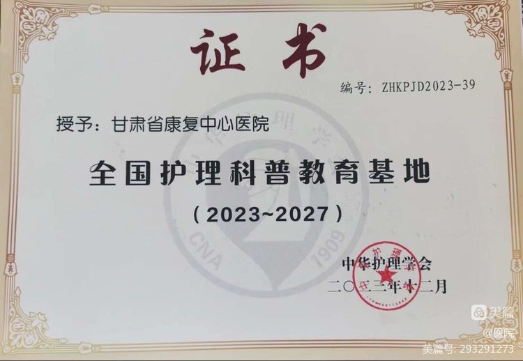 11月30日由中华护理学会举办的全国护理科普教育基地授牌仪式暨2023年科学传播能力提升培训班在京举行。甘肃省康复中心(医院)以一流的护理专业师资队伍、专业的健康教育管理能力、精湛的护理专业技术、优质的护理服务,再度被评为全国护理科普教育基地。