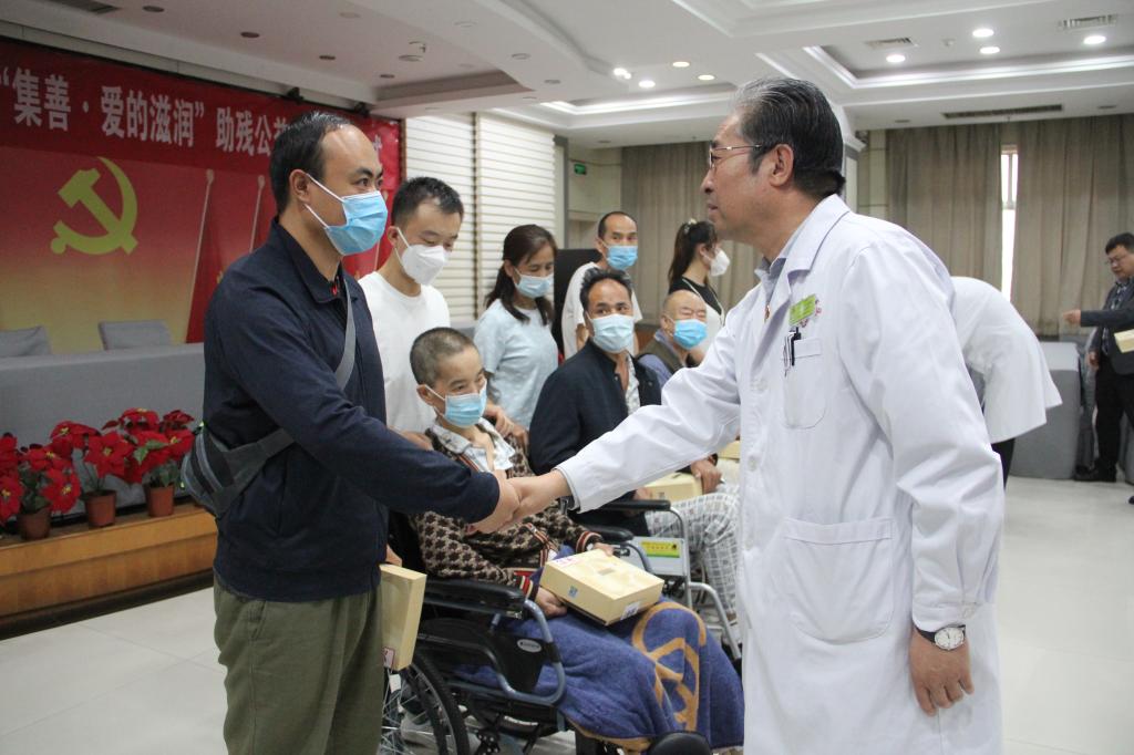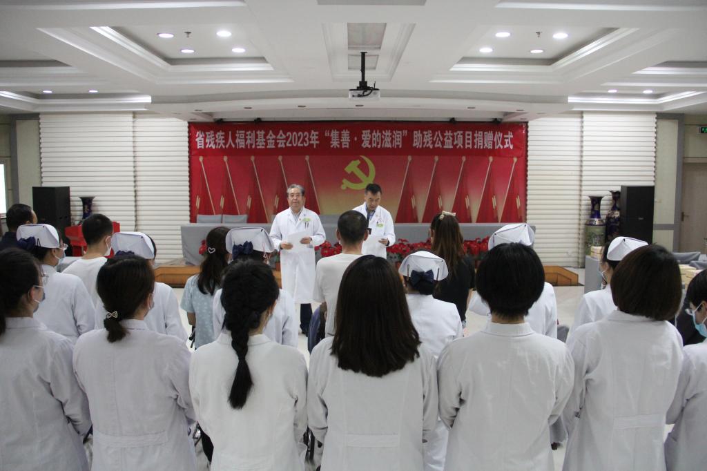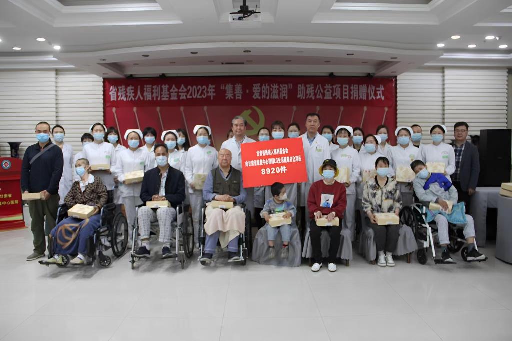 为深入学习贯彻习近平新时代中国特色社会主义思想主题教育,以实际行动把主题教育成果转化为提高残疾人及其家庭、残疾人工作者、医务人员生活质量和生活水平的具体举措上,进一步巩固拓展脱贫攻坚成果同乡村振兴有效衔接,推动“三抓三促”行动落地见效,5月17日,省残疾人福利基金会2023年“集善▪爱的滋润”助残公益项目捐赠仪式在省康复中心(医院)举行。中心(医院)党委书记王登廷出席活动并讲话,中心(医院)项目办、妇委会、受助人员代表、残疾人患者代表及残疾人工作者代表60余人参加活动。中心(医院)院长王建云主持捐赠仪式。