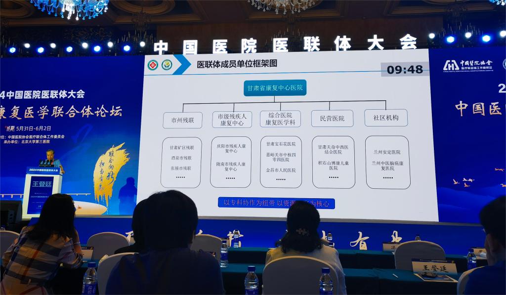 5月31日-6月2日,由中国医院协会医疗联合体工作委员会主办,北京大学第三医院承办的“2024中国医院医联体大会”在四川成都成功举办。会上成立了首届“中国医院康复医学联合体”,省康复中心(医院)被纳入首届中国医院康复医学联合体副理事长单位。省康复中心(医院)党委书记王登廷教授就甘肃省康复医联体建设所得所思,作大会深入交流。