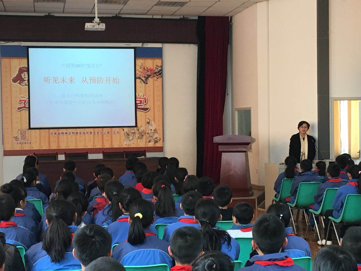 3月2日上午,医院组织听力康复科(耳鼻喉科)专家以及内、外、妇、儿、中医、眼科、康复治疗科等科室相关专家,分别在医院本部、鱼池口分院和西固合作医院以及张苏滩和广武门街道同步开展了大型免费义诊活动,为社会百姓提供健康咨询、检测和诊疗服务。医院听力康复科专家从听力筛查、诊断、治疗、康复等四个方面,普及听力残疾预防、传播日常听力康复训练,筛查新生儿听力检测,进行诊断性复筛活动,免费调试听障患者助听器、人工耳蜗等项服务,共发放宣传资料800余份。活动期间,医院免费为40名听障患者验配助听器,价值40余万元。同时,从3月1日至6日,医院组织听力康复科专家为嘉峪关路小学、团结新村小学和兰州七中三个学校作了听力科普专题讲座,告知学生日常生活中要保护自己的耳朵,避免意外伤害,同时教会学生掌握爱耳、护耳常识,有效减少听力残疾的发生。