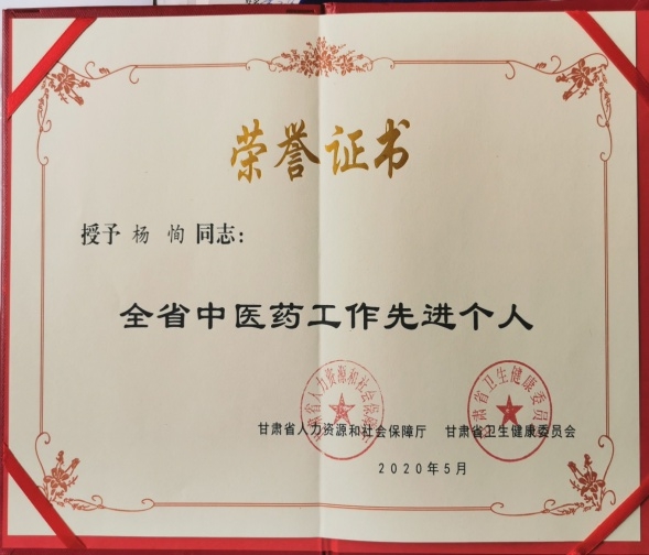 5月28日,甘肃省中医药大会在金城兰州召开。会议传达了全国中医药大会主要精神,安排部署了当前和今后一个时期我省中医药工作,并对全省中医药工作先进集体和先进个人进行了表彰,此次共表彰33家单位为“全省中医药工作先进集体”,67名同志为“全省中医药工作先进个人”;省康复中心医院传统康复科杨恂主任医师荣获“全省中医药工作先进个人”荣誉称号。