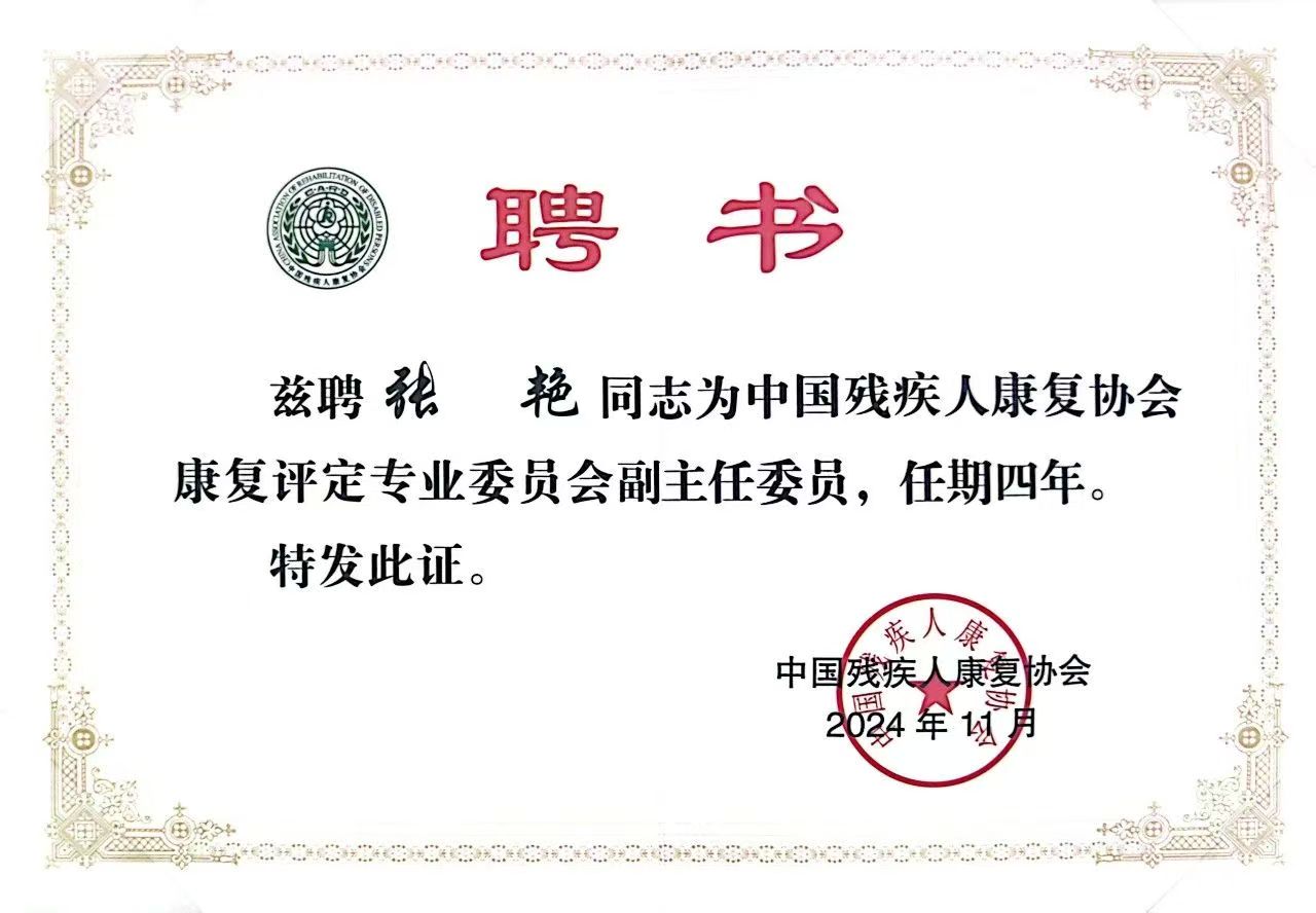 2024年11月29日-30日中国残疾人康复协会2024 年综合学术交流活动在北京顺利举行。根据中国残疾人康复协会的批复,同期召开第二届康复评定专业委员会换届大会。换届依据《中国残疾人康复协会分支机构换届管理办法》等有关规定进行,选举产生了由93名委员组成的第二届康复评定专业委员会,其中副主任委员11名、常务委员21名,主任委员1名;为凝聚青年力量、助力新生力量成长,第二届康复评定专业委员会还吸纳了29名青年委员。会上,为当选委员颁发了聘书。点点录入平台app下载脊髓损伤康复科张艳主任当选为中国残疾人康复协会康复评定专业委员会副主任委员。
